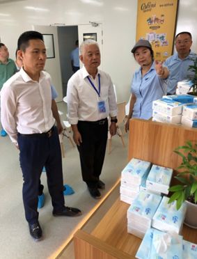 曹振雷主任等参观乐鱼在线登录最新官网-乐鱼(中国)保湿纸无尘车间和产品展示中心