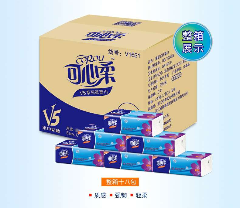 可心柔 V5系列CoRou云柔系列白色木浆60抽